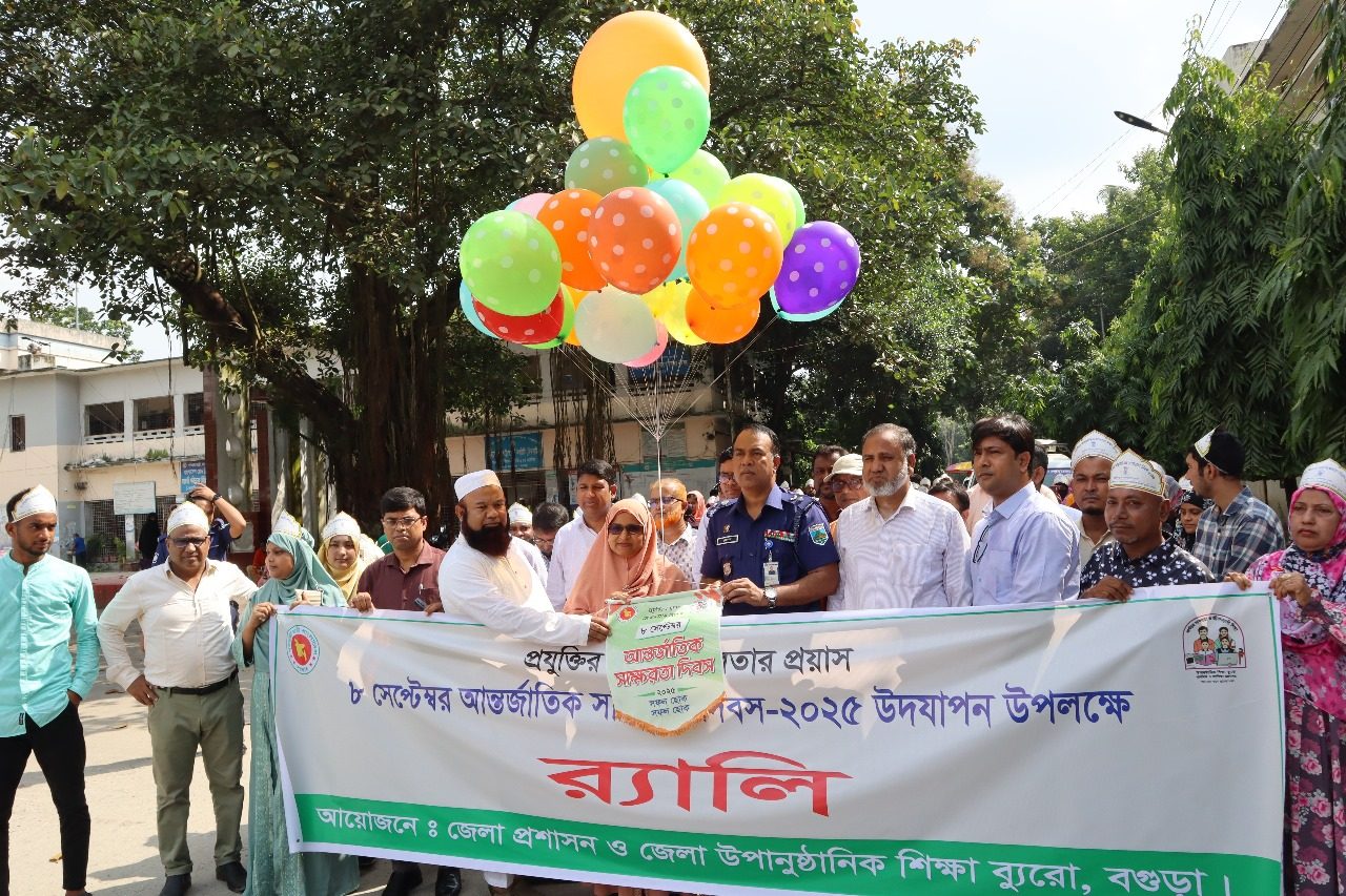 “প্রযুক্তির যুগে সাক্ষরতার প্রয়াস” এই প্রতিপাদ্যকে সামনে রেখে জেলা প্রশাসন ও উপানুষ্ঠানিক শিক্ষা ব্যুরো, বগুড়া’র আয়োজনে ৮ সেপ্টেম্বর ২০২৫ তারিখে আন্তর্জাতিক সাক্ষরতা দিবস-২০২৫ উপলক্ষে এক
